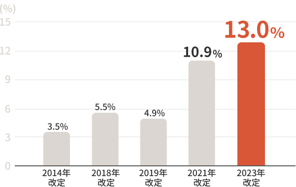 保険料が毎年上がり続けています火災保険の参考純率全国平均引き上げの推移